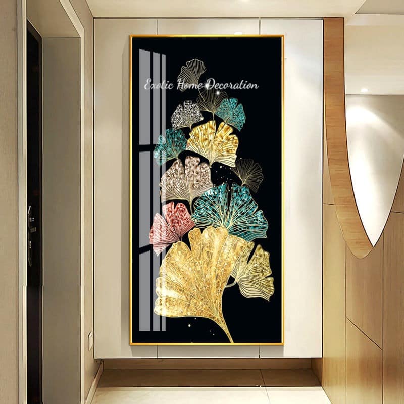 Home Crystal Porcelain Vertical Diamond Effect Multicolor Gingko Leaves